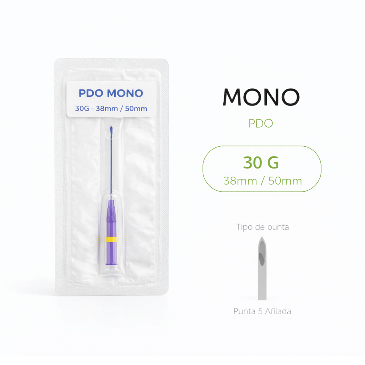 Este hilo PDO Mono no genera efecto tensor mecánico ni volumen, sino que actúa como bioestimulador, ayudando a mejorar la elasticidad, suavidad y apariencia general de la piel. Se presenta en empaque estéril individual, garantizando seguridad y control en cada procedimiento.